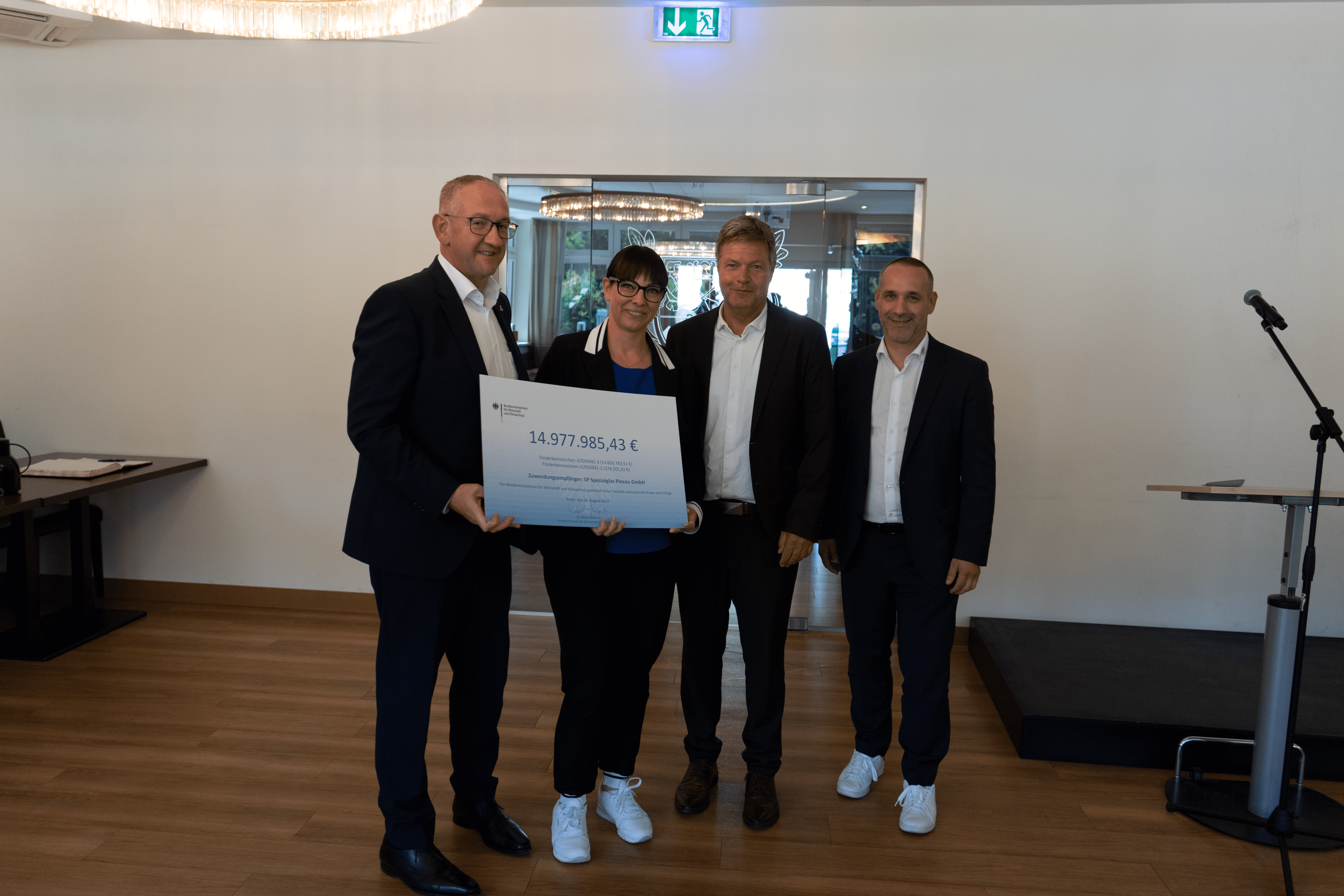 Kleintettau/Piesau. Am 26. August 2024 besuchte Vizekanzler und Bundesminister für Wirtschaft und Klimaschutz Dr. Robert Habeck den Stammsitz der HEINZ-GLAS Gruppe in Kleintettau. Anlass des Besuchs war die Übergabe eines Förderbescheids für die Vorhaben 67DDI041-3 „Glass4FutureInvest“ und 67DDI041-2 „Glass4FutureEE“ an die SP Spezialglas Piesau GmbH in Höhe von 14,6 Millionen Euro („Glass4FutureInvest“) und 375.000 Euro („Glass4FutureEE“), welche dem Förderprogramm „Dekarbonisierung der Industrie“ des Bundes zuzuordnen sind.